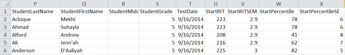 In addition to PDF and online output, you can choose a spreadsheet output for the Achievement Status and Growth report. It provides all of the data in a single, comma-delimited file (CSV format).