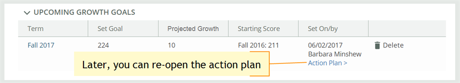 For an upcoming term, you can create a growth or performance target for each student. Later, return to see if the student met the goal.