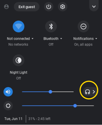 2. Next to the Volume slider, click the headphone icon